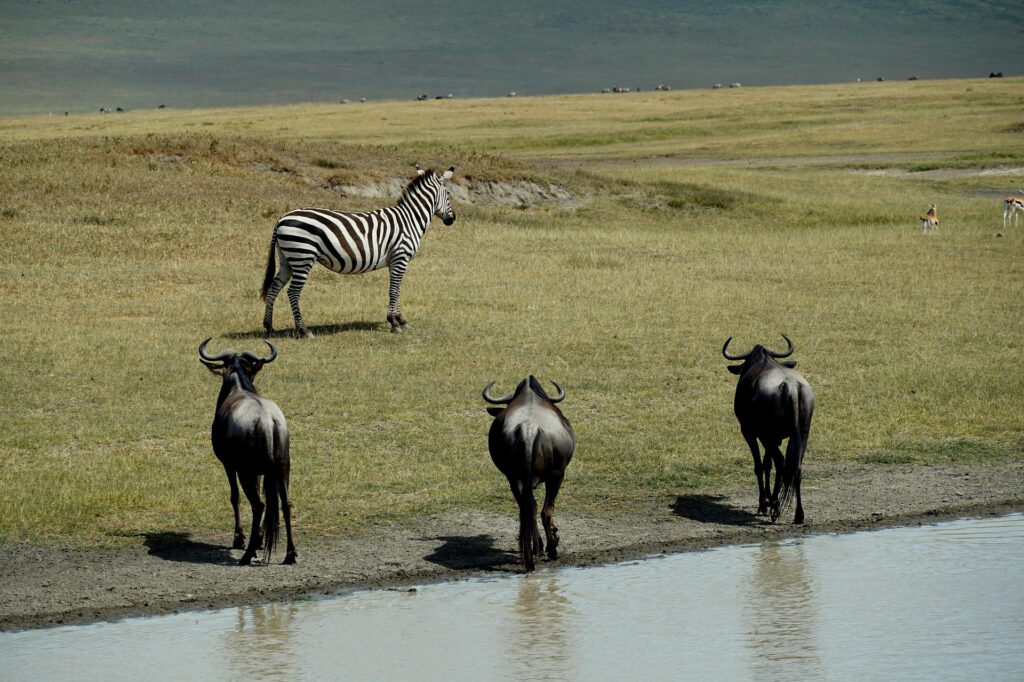wildlife, framed by dramatic crater walls.